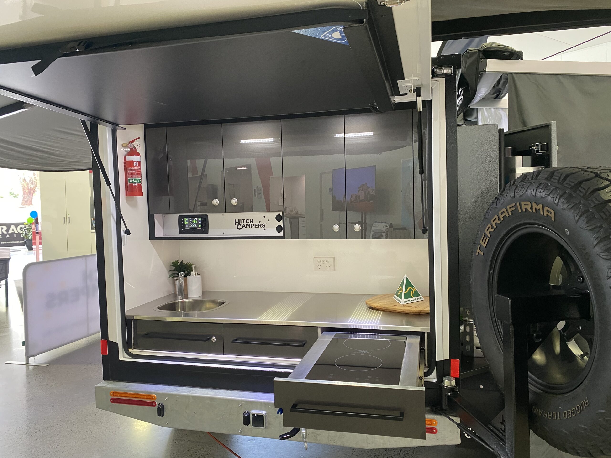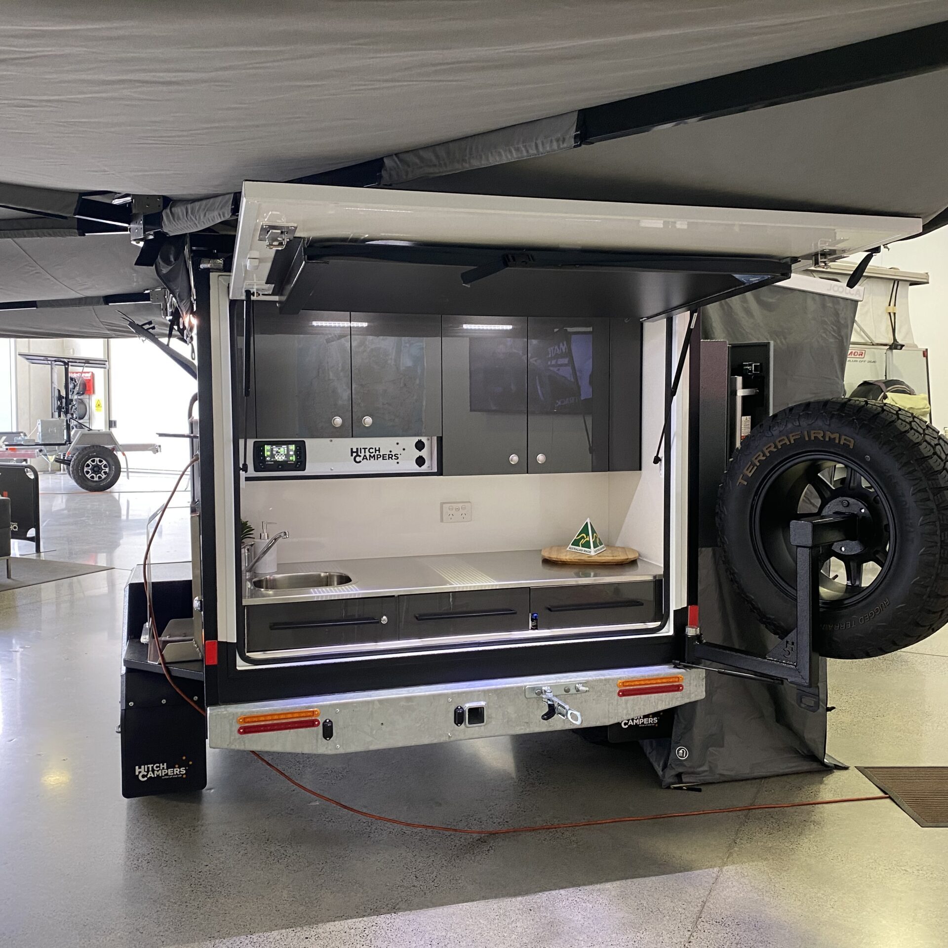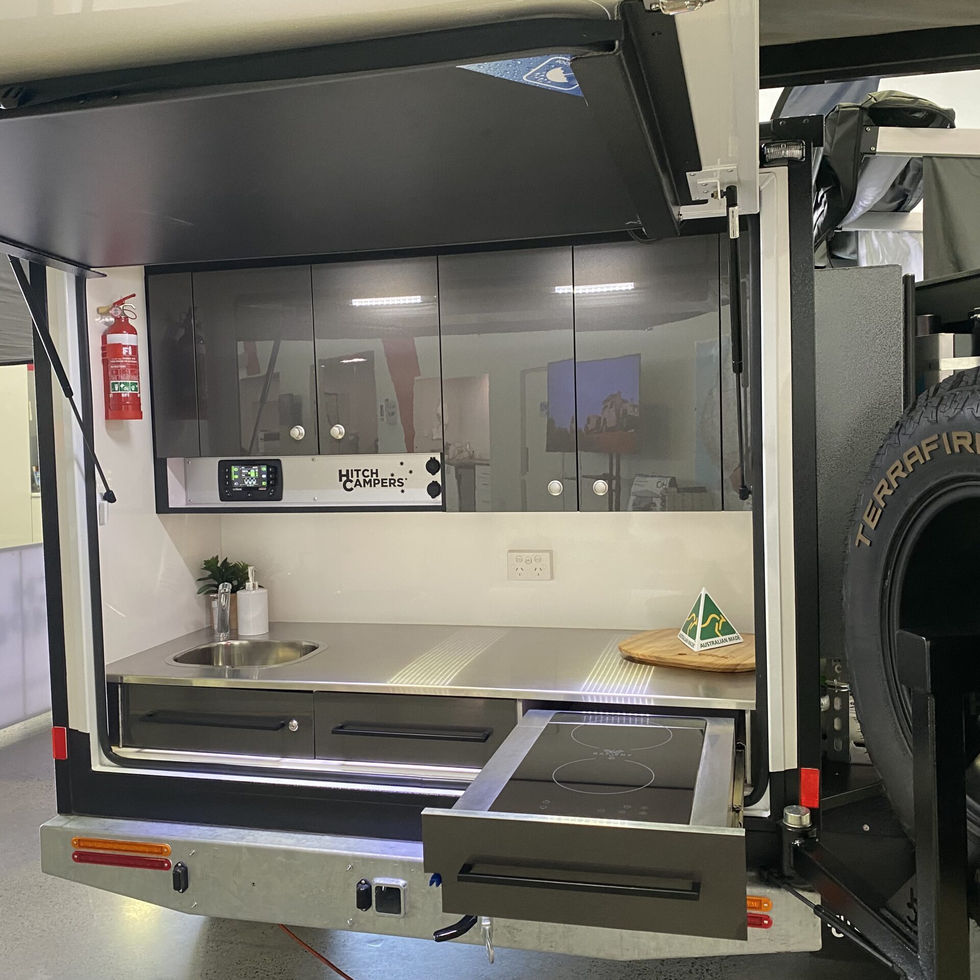 Packing all the essentials, the CANNING Off-Road Teardrop Camper is your home away from home. Featuring a full-size queen bed, fully equipped kitchen, 90L fresh water, this camper is ready to hitch up and go on your adventures. Whether it’s short weekend trips or touring across the country, the CANNING will accompany you and your family and provide all the necessities to enjoy the great outdoors, without having to forego your favourite luxuries from home. The display model has so many extra fitted. Its a must see!!