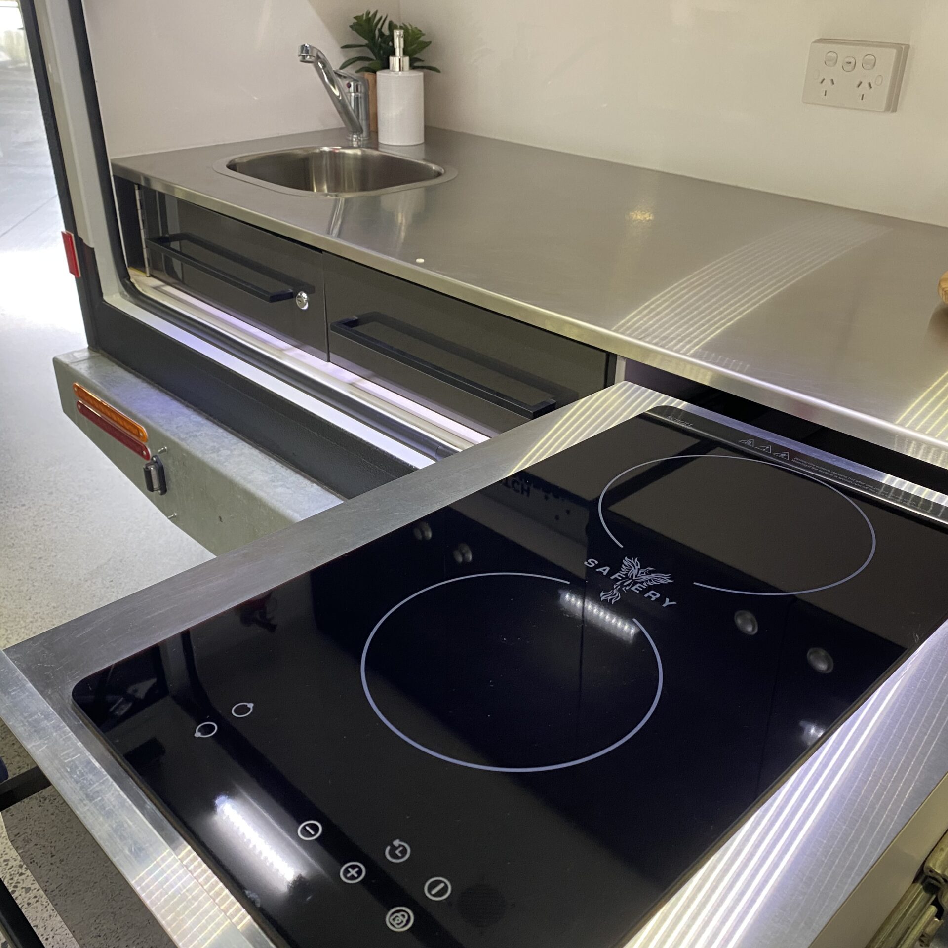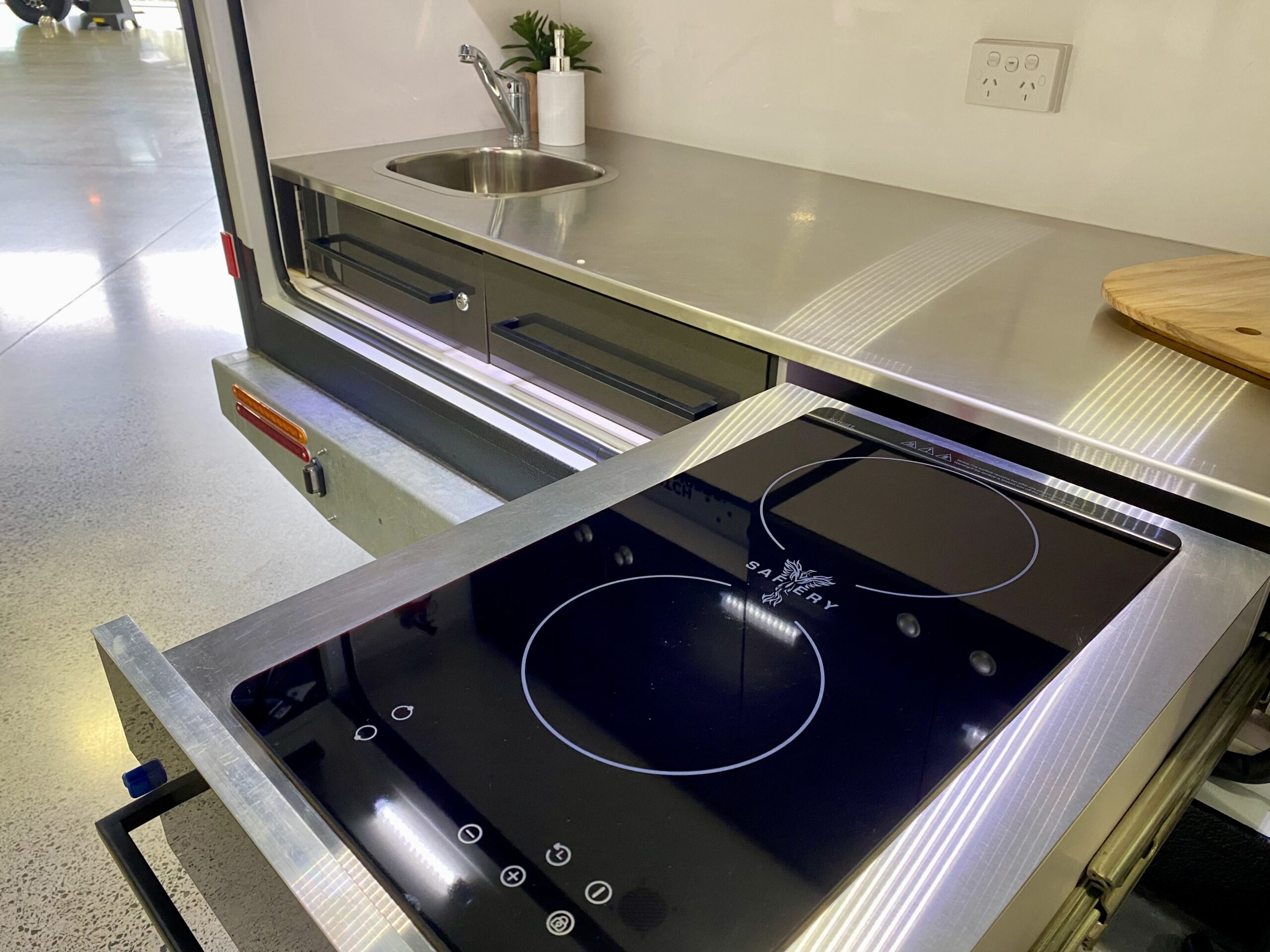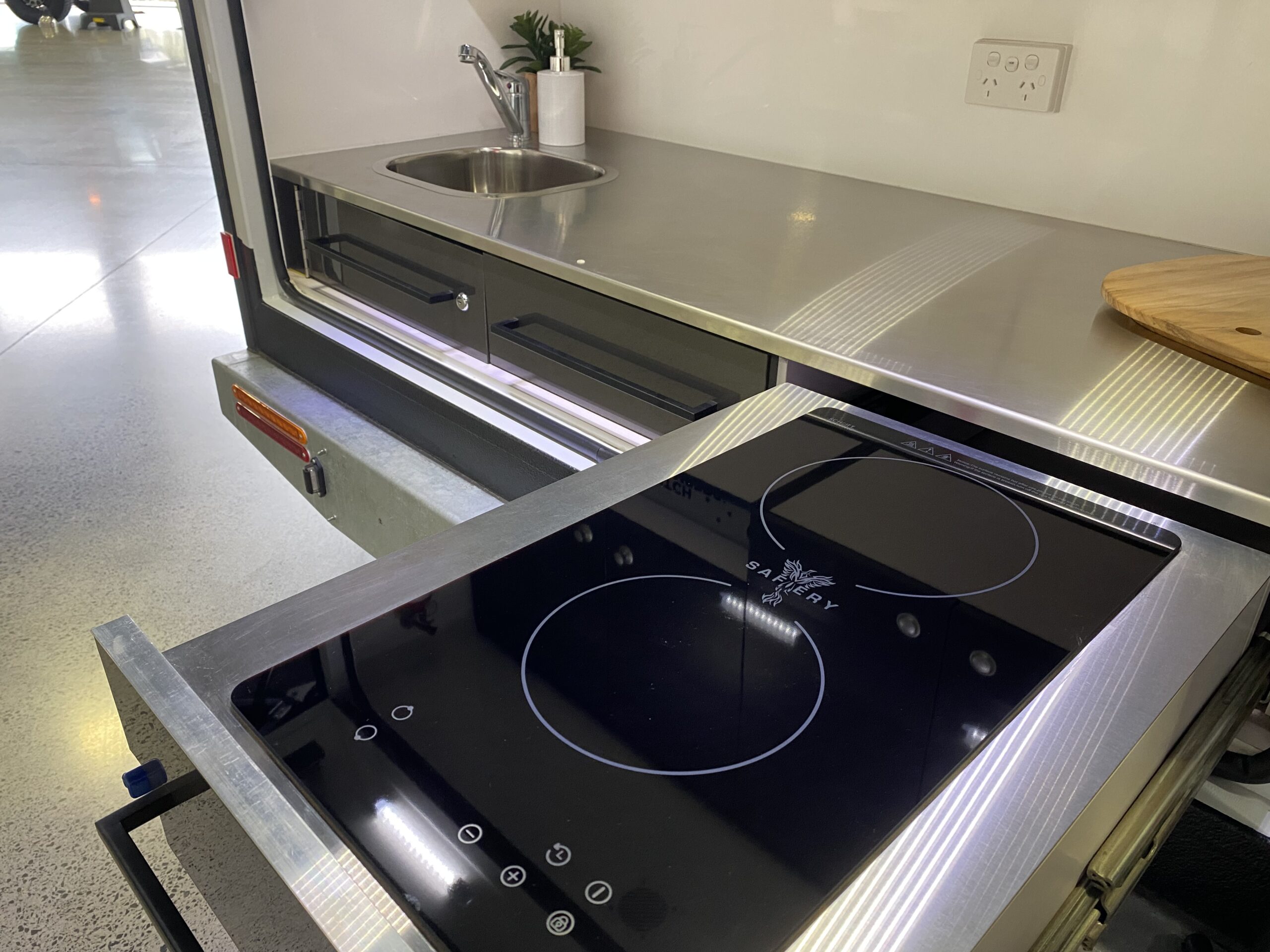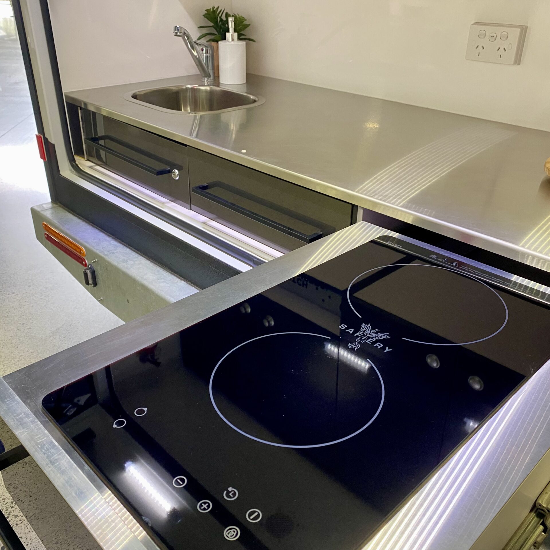 Stainless steel slide out external kitchen * 2 hob induction cooktop with built-in 1800W & 1500W hobs
