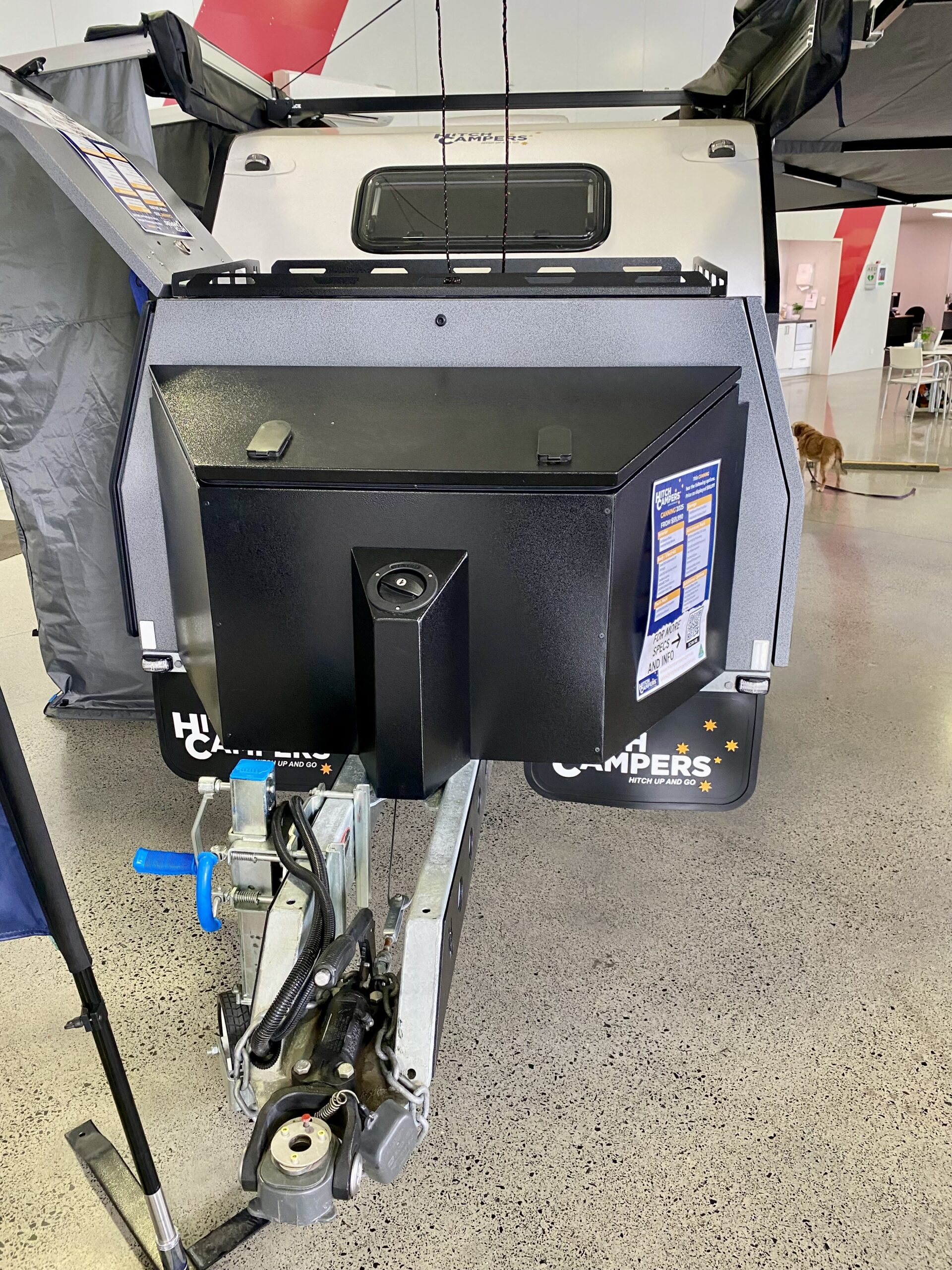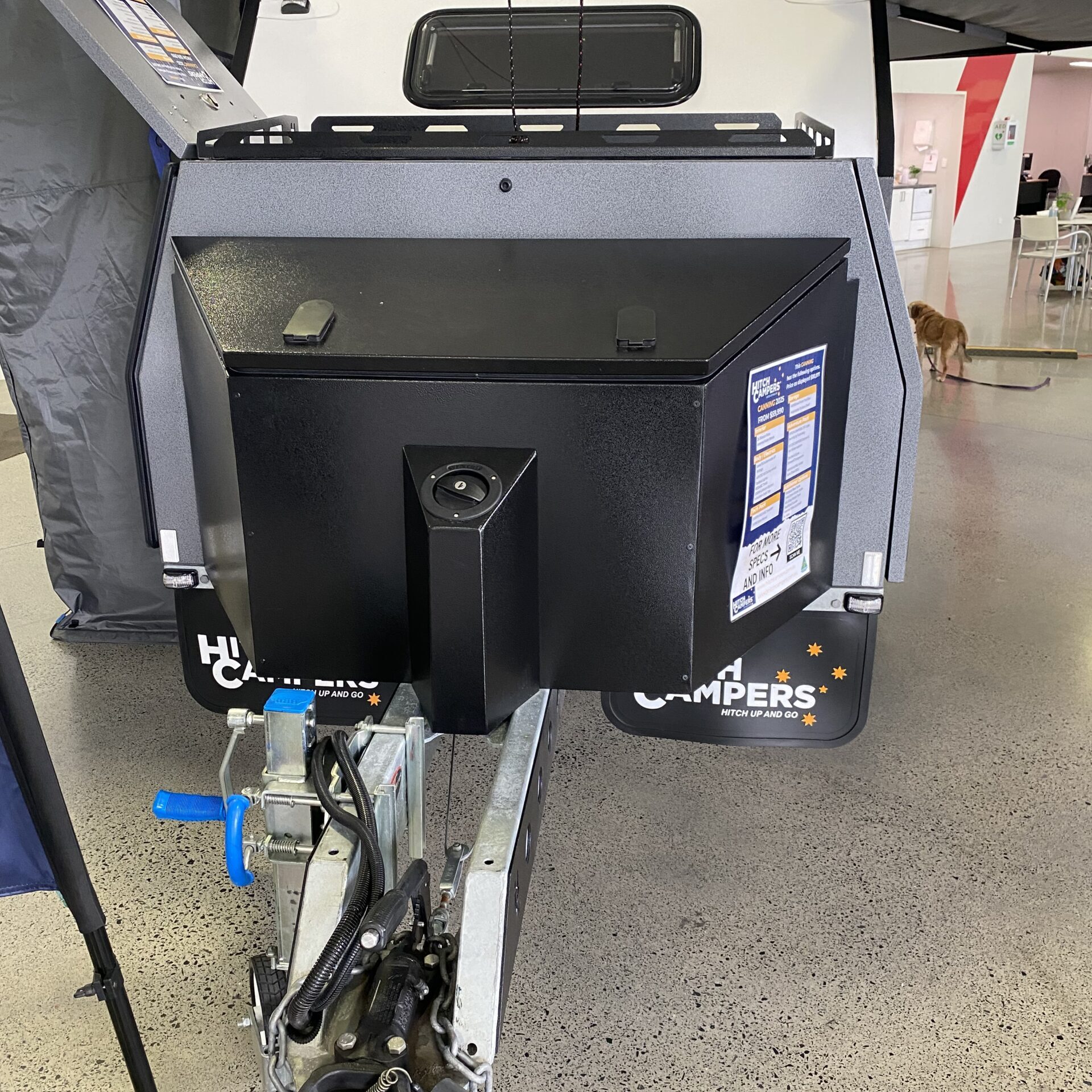 Front boot – 2 x sealed lockers with power & fridge slide * Front boot pantry LHS * Slide out tray with tie down points RHS * 3 x drawer sheet metal under-bed storage system