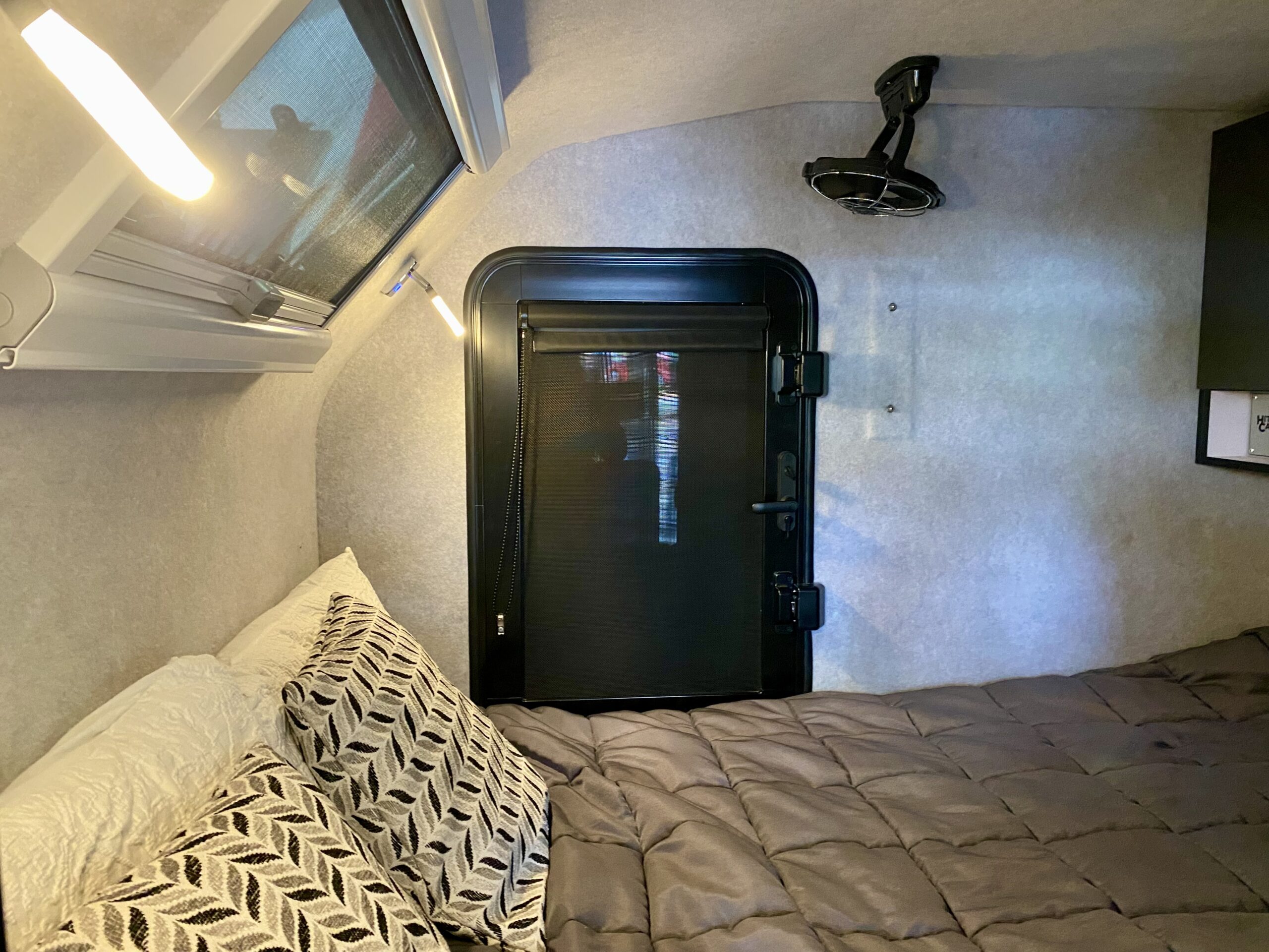 Roof storage system * Side wall storage pockets * Under mattress liner * 3-speed fan with timer * 2 x roof hatches with blinds & midge screens