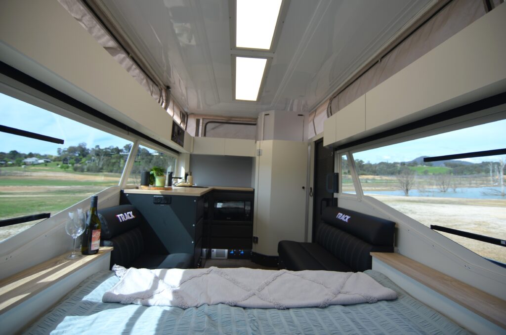 The Track 4 Series 2 builds on rock-solid reputation for the bulletproof build and go anywhere off-roadability. The latest Track 4 Series 2 offers more solar, more lithium, refined styling plus updated chassis and suspension from an industry leader in off road caravan design and build quality. With up to 1000W solar and up to 1500Ah lithium batteries and the comfort of diesel hot water and heating, air conditioning and internal and external cooking options, the Track T4 Series 2 will go further for longer in comfort without having to compromise your lifestyle while on the road.