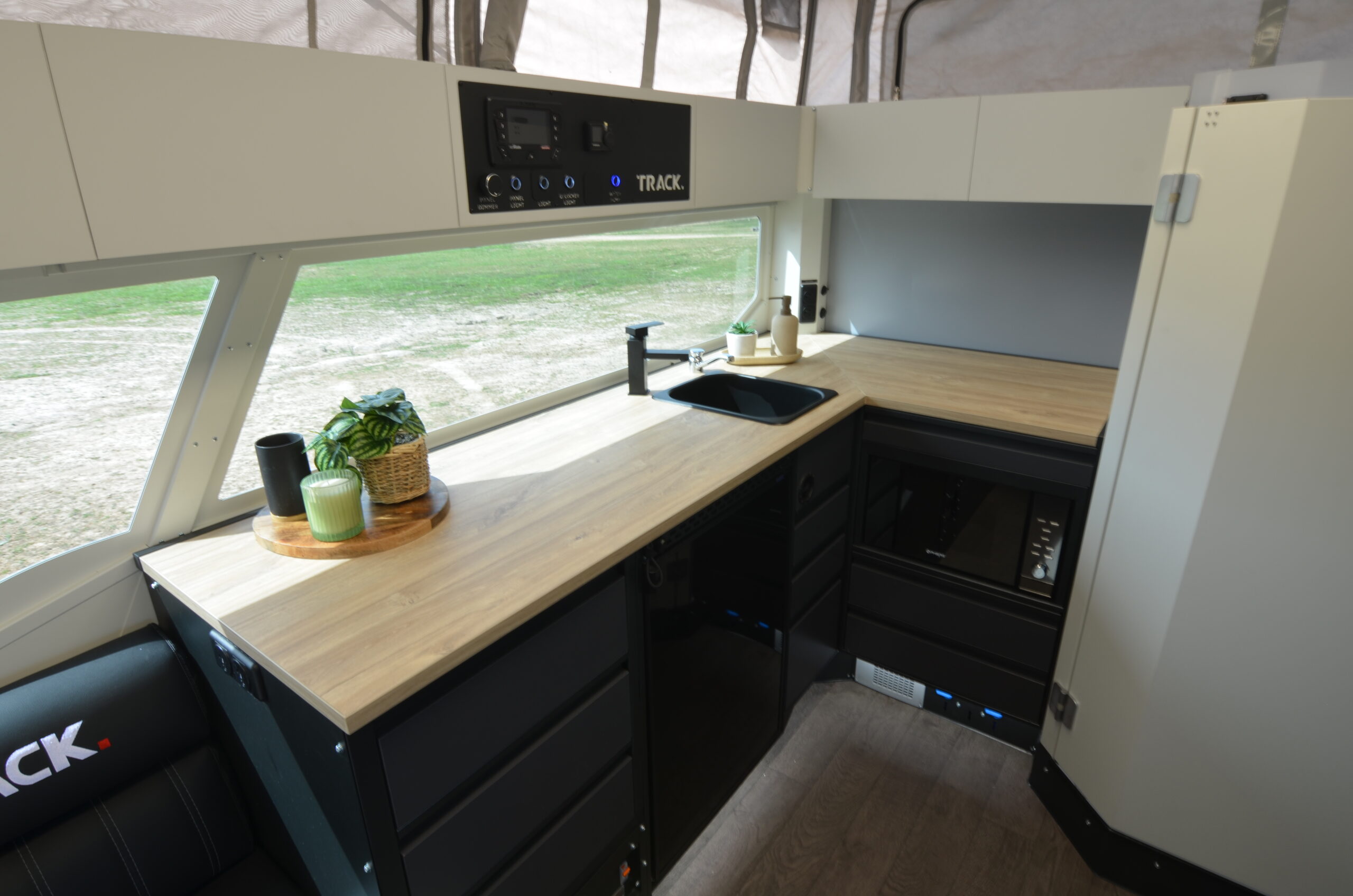 windshield, 2 x dual supply power points, under kitchen LED